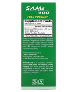 Jarrow Formulas® SAM-e 400 provides a full 400 mg SAM-e (net yield) from 800 mg of SAM-e tosylate disulfate. SAM-e 400 is manufactured under low temperature and low humidity and is enteric-coated to ensure a biologically active product.