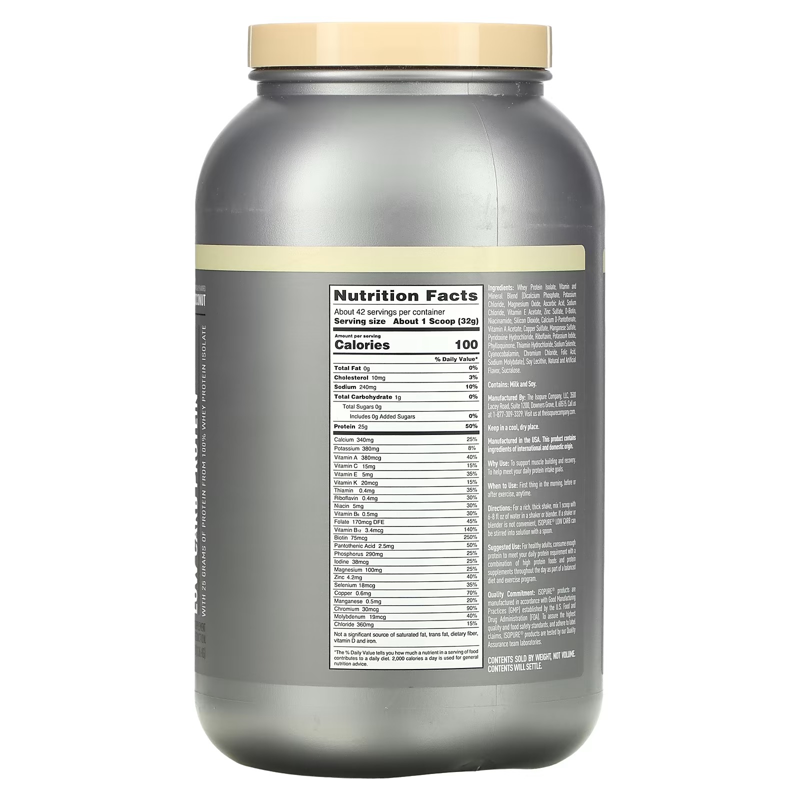 25 grams of delicious 100% pure, eBST free’, whey protein isolate that’s low on the carbs. 100% whey protein isolate means exceptional purity and quality: excess fat, cholesterol, sugars, carbs, lactose and other fillers are removed to give you everything you need and nothing you don’t. And each serving delivers 5.5 grams of naturally occurring BCAAS, 4 grams of naturally occurring glutamine and an added vitamin and mineral blend to help you meet your micronutrient needs.
