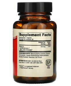 My Vitamin K2 supplies a nutritional dose of 180 mcg of a patented form of vitamin K2, MenaQ7. This is the first and only clinical proven vitamin K2 for both bone and cardiovascular health. Studies show MenaQ7: